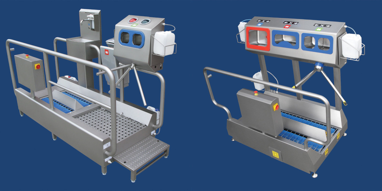 Obuwie robocze to jeden z głównych nośników zanieczyszczeń biologicznych. Dlatego w strefie higieny stosuje się urządzenie do dezynfekcji butów, które automatycznie neutralizuje drobnoustroje. To szybki i skuteczny proces, który eliminuje ryzyko wniesienia bakterii na halę produkcyjną.